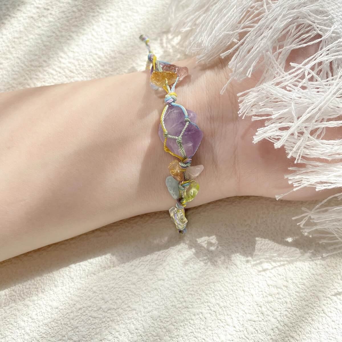 Amethyst Raw Stone Macrame Bracelet