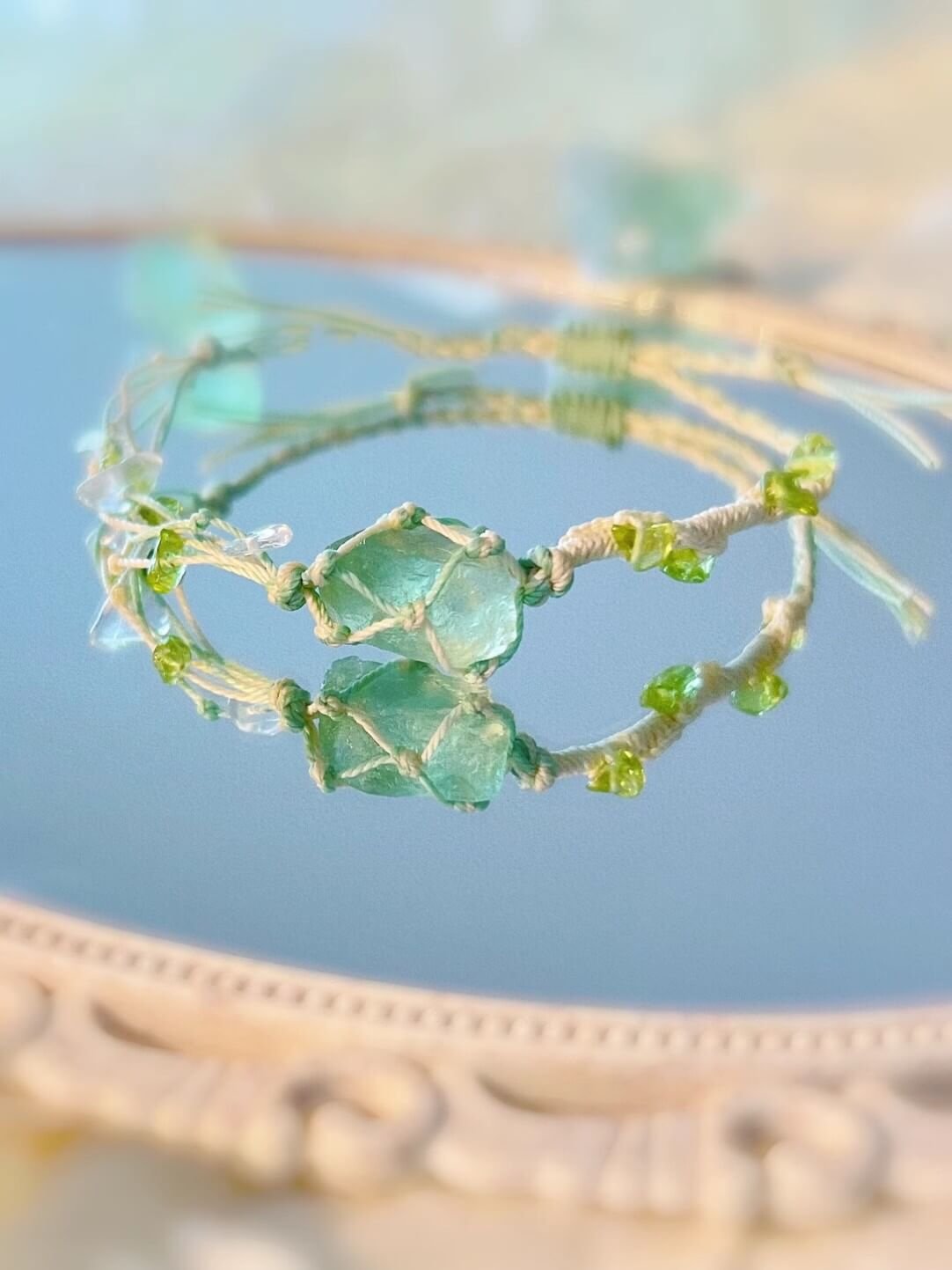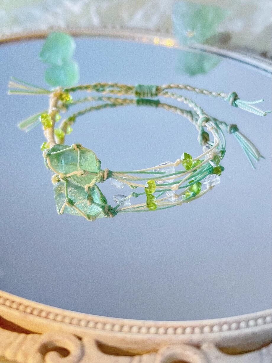Chic Green Fluorite Macrame Crystal Bracelet