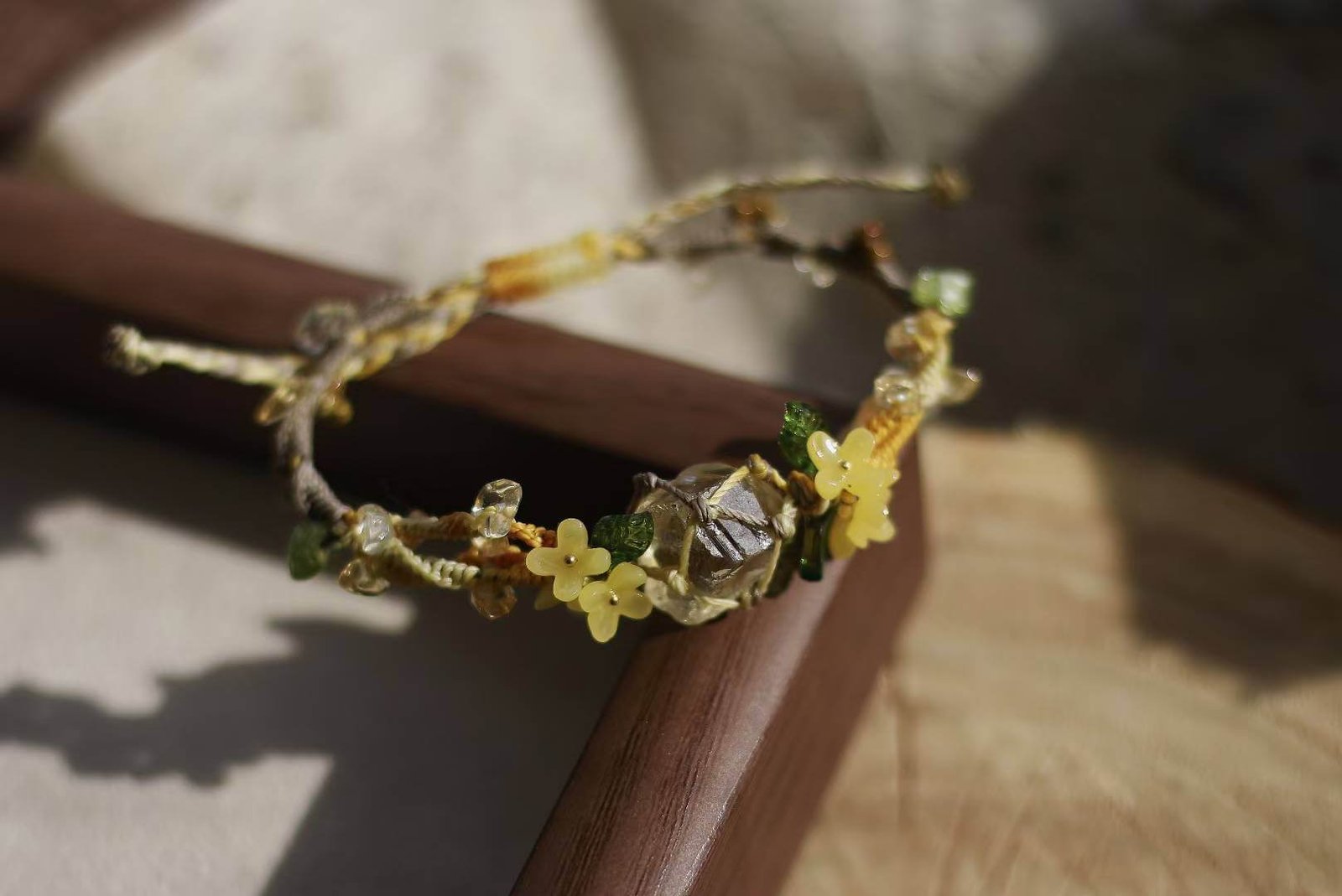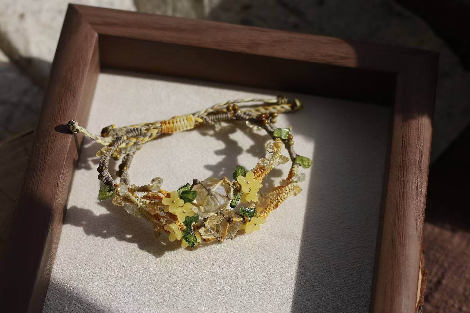 This citrine bracelet is a celebration of nature’s joy and gentle beauty. Featuring warm, radiant citrine, delicate resin flowers, and charming leaf charms, this bracelet feels like a walk through a blooming garden on a golden afternoon.