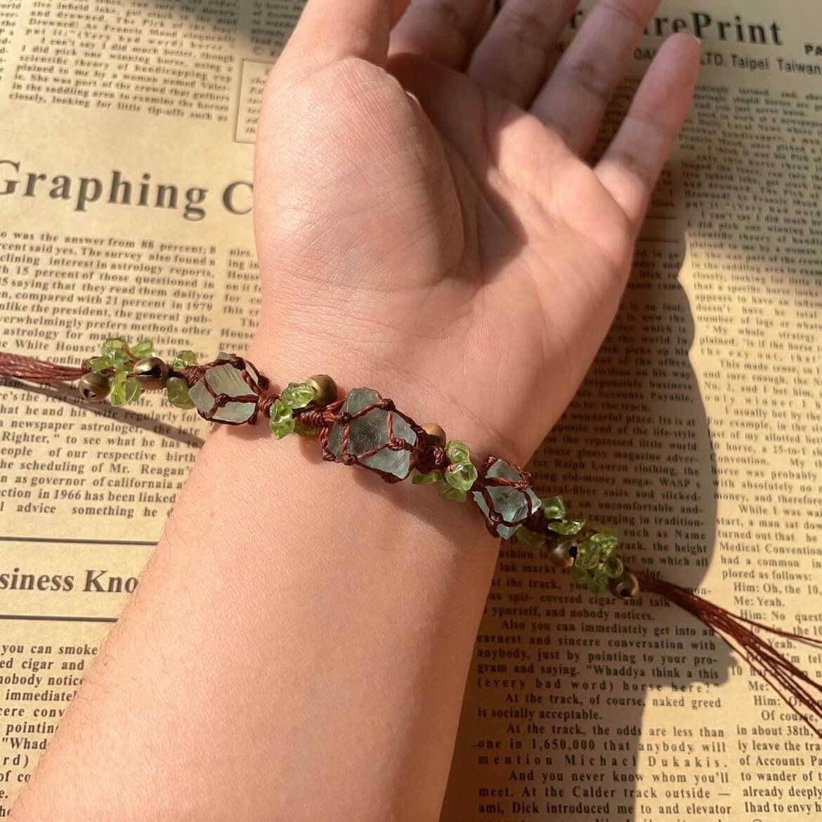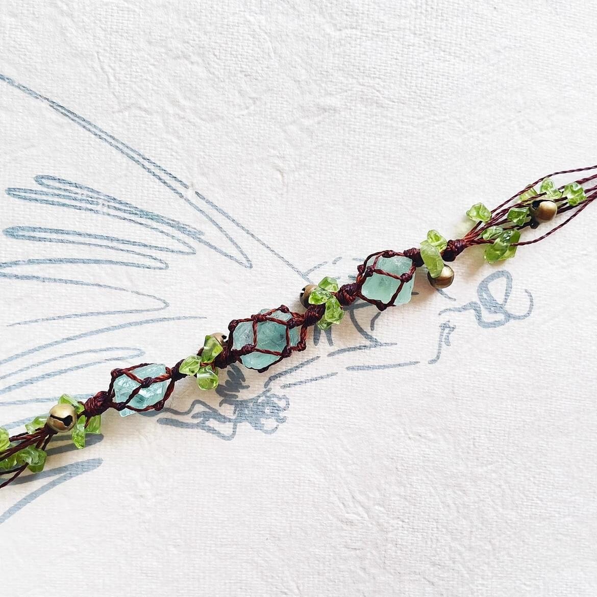Green Fluorite Macrame Bracelet with Bell