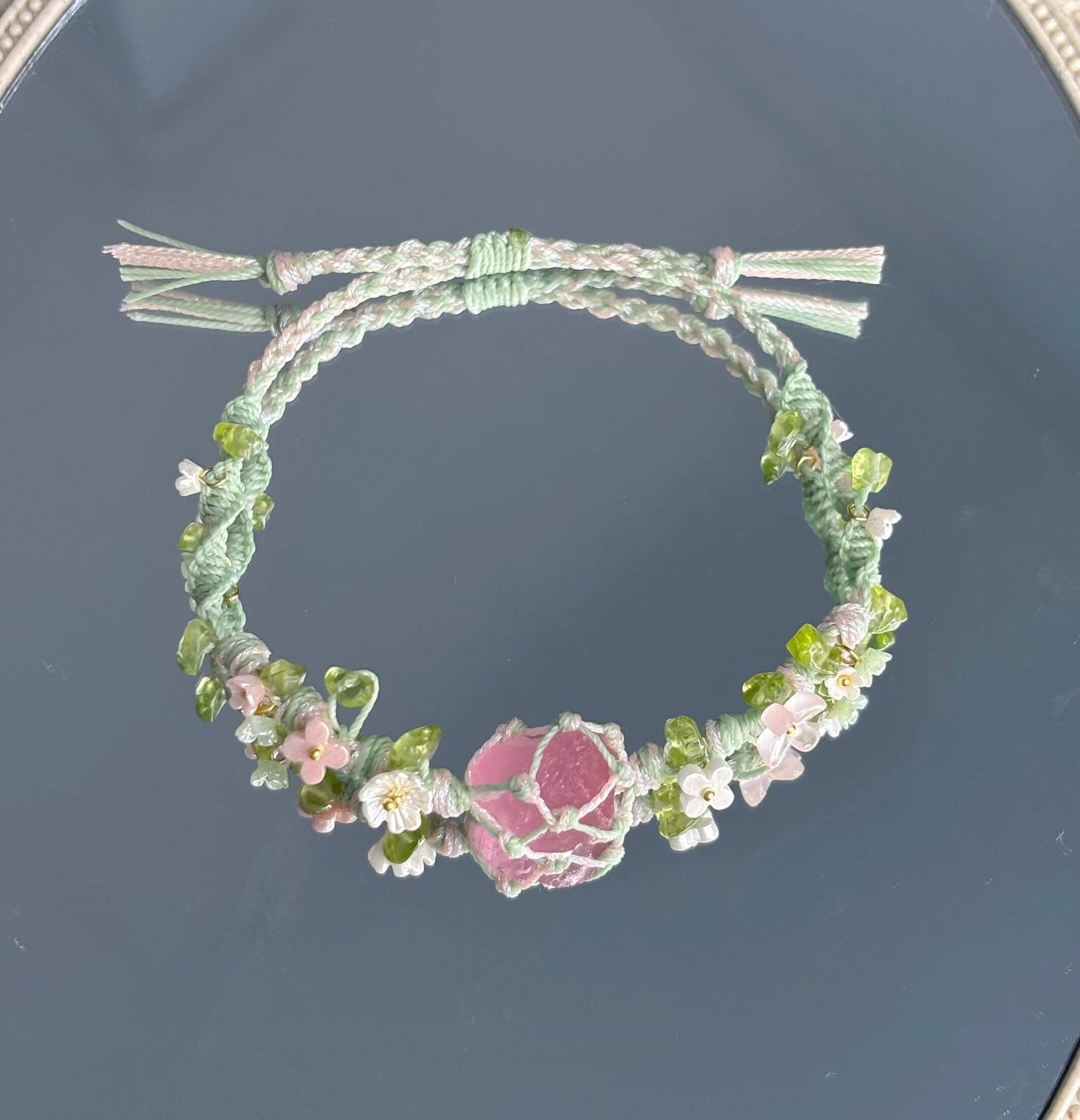Pink Crystal Macrame Bracelet