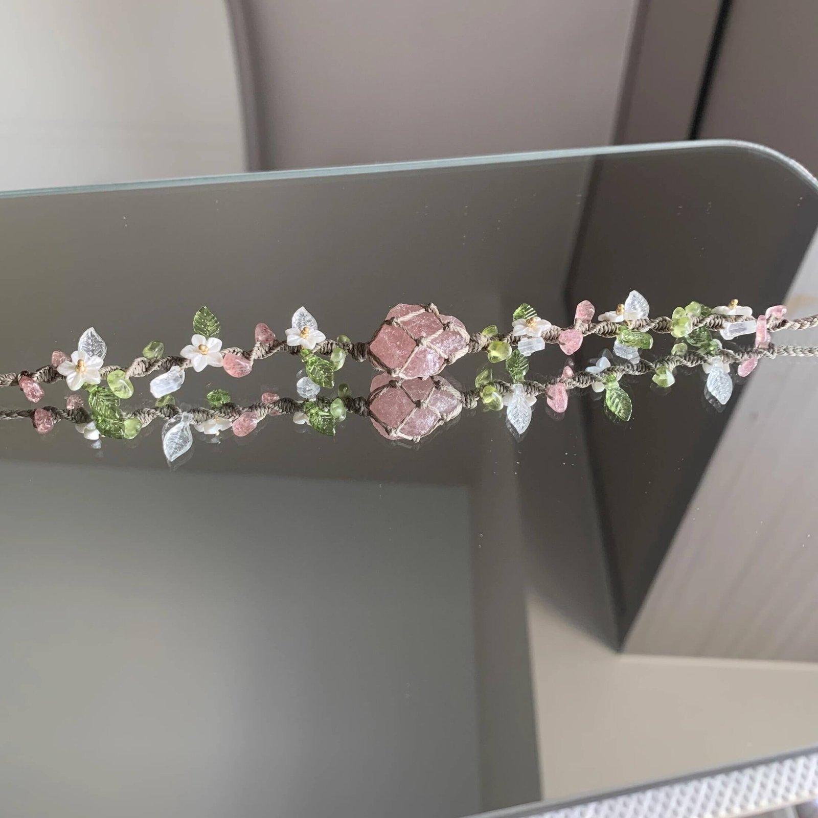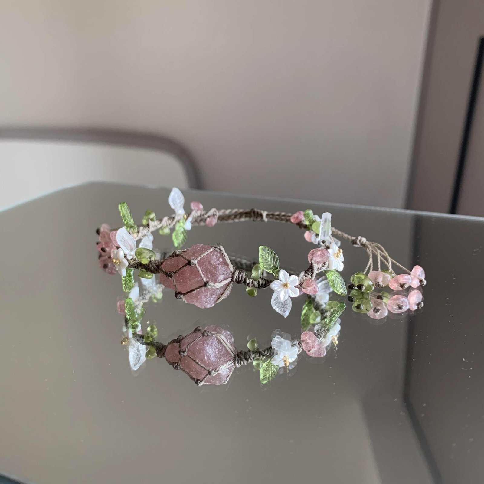 Strawberry Quartz Woven Bracelet